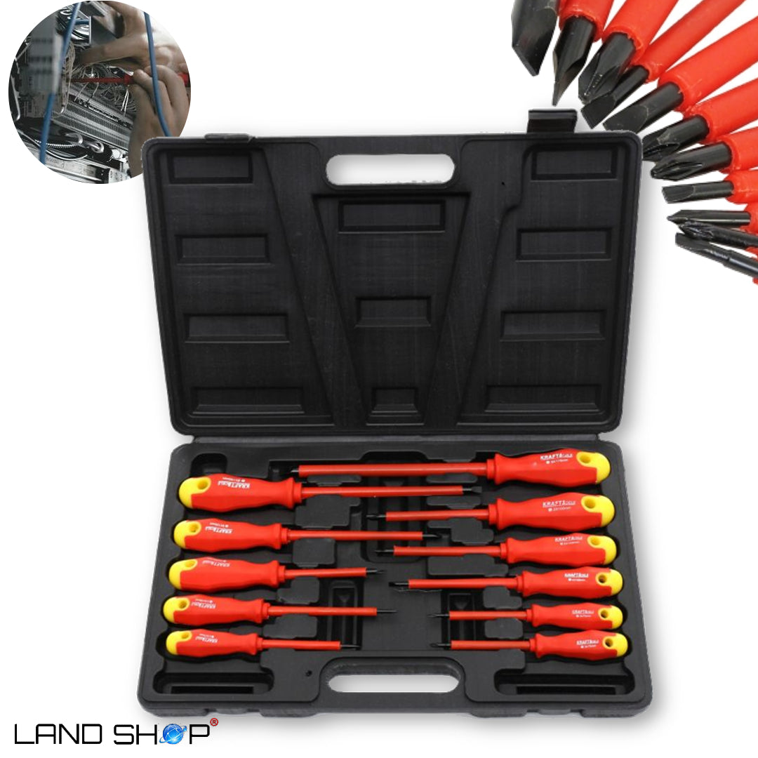 Set od 11 komada izoliranih preciznih odvija?a koji ?e se koristiti u elektroinstalaterskim radovima.