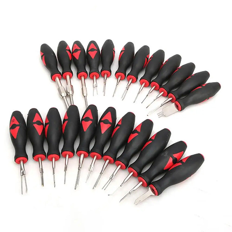 Set alata za otpuštanje terminala s 23 dijela pruža sve što vam je potrebno za rad s elektri?nim terminalima u vozilima ili drugim elektroni?kim sustavima. Osigurava sigurno otpuštanje bez ošte?enja kablova i konektora, ?ine?i ga neophodnim alatom za profesionalne tehni?are i DIY entuzijaste.