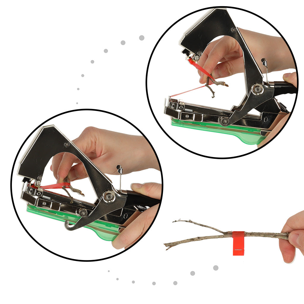 Automatske škare za vezivanje omogu?uju jednostavno i u?inkovito vezivanje razli?itih vrsta drvenastog i zeljastog bilja pomo?u omotnog traka. Omotni trak se automatski prereže i spoji s pisa?om spajalicom, stvaraju?i ?vrsto vezanje koje je otporno na utjecaj sunca, snažne oluje i razli?ite kemijske zaštite.