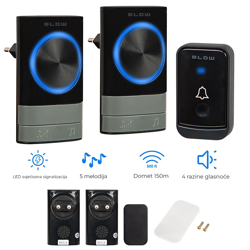 Bežično zvono AP-12 praktično je i moderno rješenje za svaki dom ili stan. Zahvaljujući dva prijemnika, zvuk se može čuti u različitim prostorijama, a elegantan dizajn uklapa se u svaki interijer.