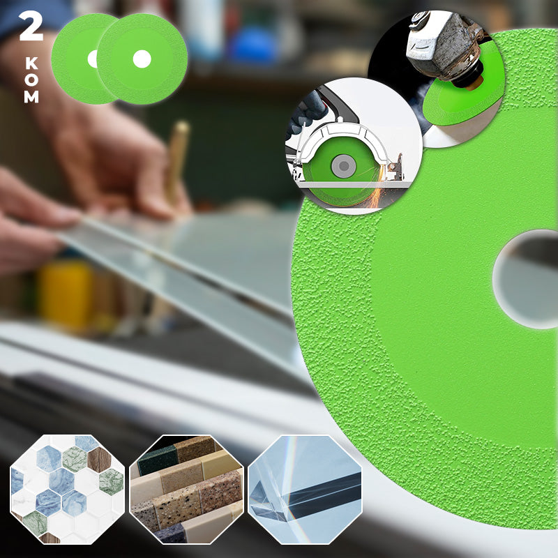 Ova visokokvalitetna dijamantna rezna ploča dizajnirana je za precizno rezanje i poliranje stakla, mozaik pločica i kamena. Sa svojom tankom debljinom od samo 1 mm i dijamantnim obručem visine 15 mm, ova ploča omogućava brzo i čisto rezanje uz minimalno usitnjavanje.