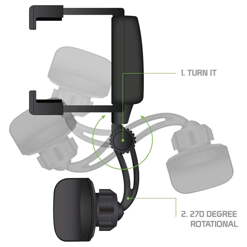 Uživajte u opuštenoj vožnji s ovim izvanrednim proizvodom koji ?e osigurati da vaš pametni telefon ne klizi i ne ogrebe se. Proizvod ?vrsto se pri?vrš?uje na unutarnje ogledalo vašeg automobila bez potrebe za alatima. Zahvaljuju?i rotacijskoj kugli i zakrivljenoj fleksibilnoj cijevi, možete posti?i idealan pogled na svoj telefon, a dizajn proizvoda pruža stabilnost i snagu te apsorbira vibracije i pokrete.
