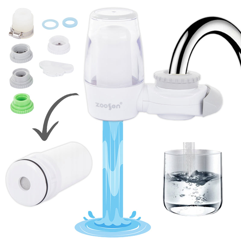 ?? Zoosen filter za vodu iz slavine jednostavan je za korištenje i u?inkovito filtrira vodu iz slavine, smanjuju?i male ?estice, talog i metale štetne po zdravlje. Kapacitet jednog filtarskog uloška je do 1000 litara vode, što omogu?uje dugotrajnu upotrebu. Filtrirana voda poboljšava okus ?aja i jela.