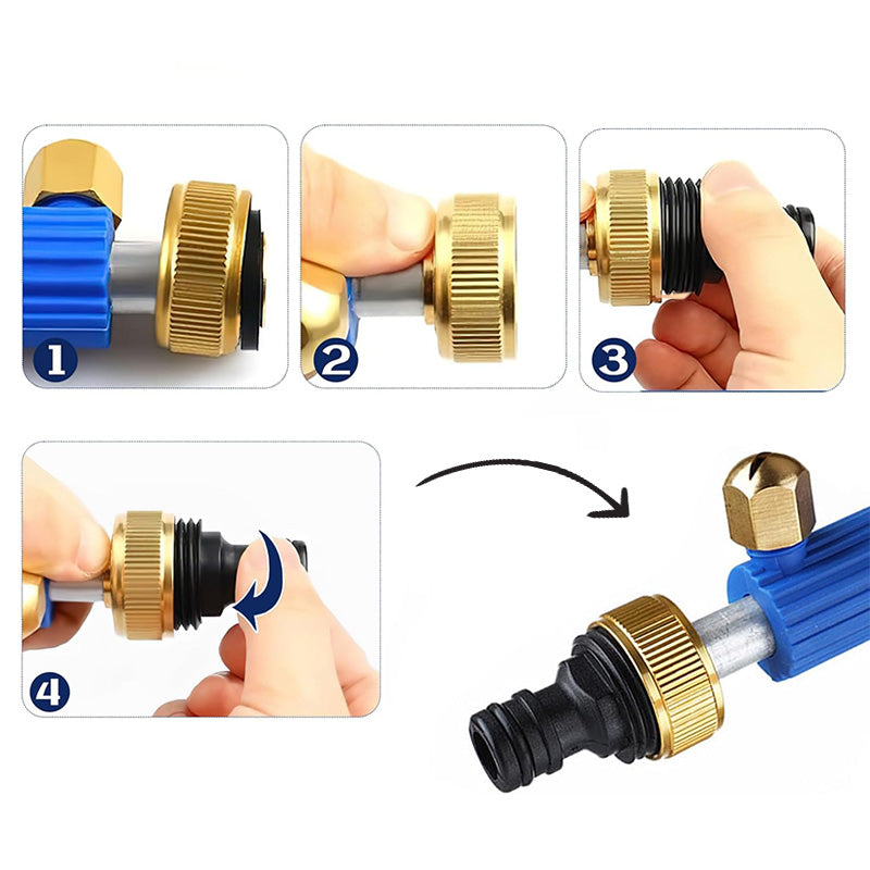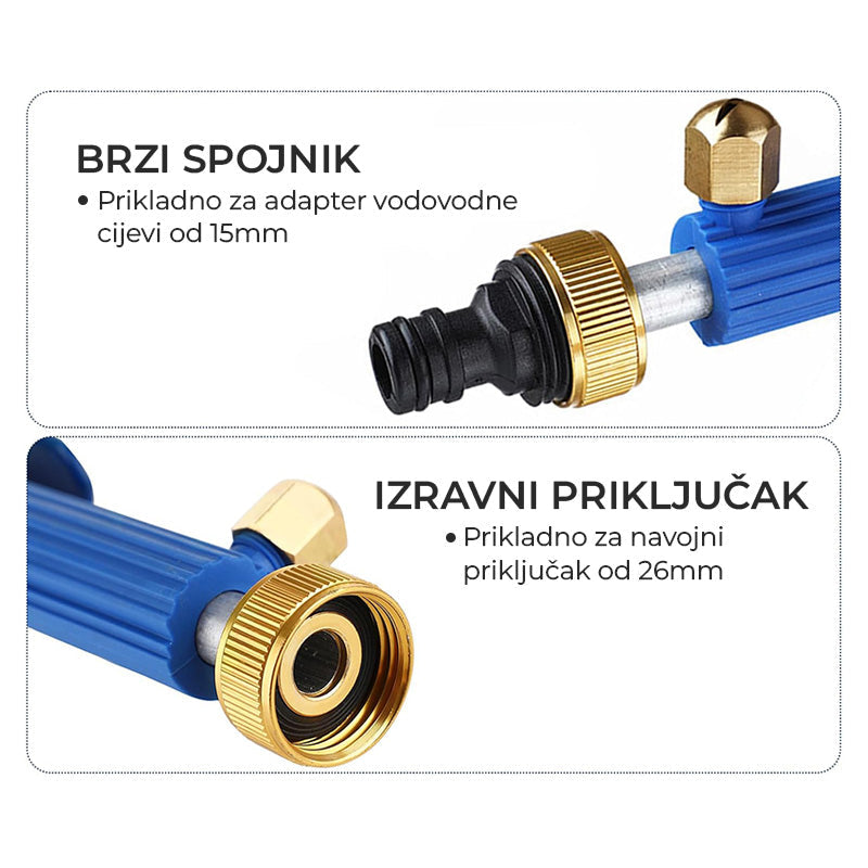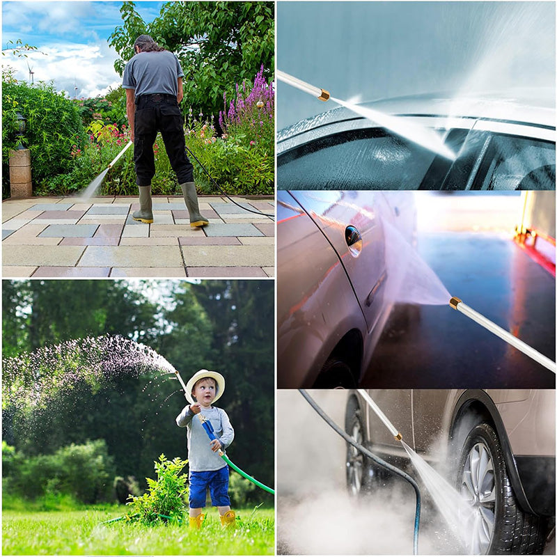 Jednostavna upotreba: Ova cijev za visokotla?no pranje odgovara svim ¾" standardnim vrtnim crijevima i može se koristiti s drugim veli?inama pomo?u standardnog 1" ženskog priklju?ka za crijevo ili s elektri?nim sustavom za pranje pod pritiskom pomo?u priloženog adaptera.