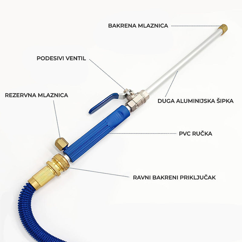 Svestrana uporaba: S udaljenosti prskanja od 15 m, prikladna je za razne zadatke ?iš?enja, uklju?uju?i ?iš?enje krovova, drugog kata, suncobrana, stolaca i bazena.