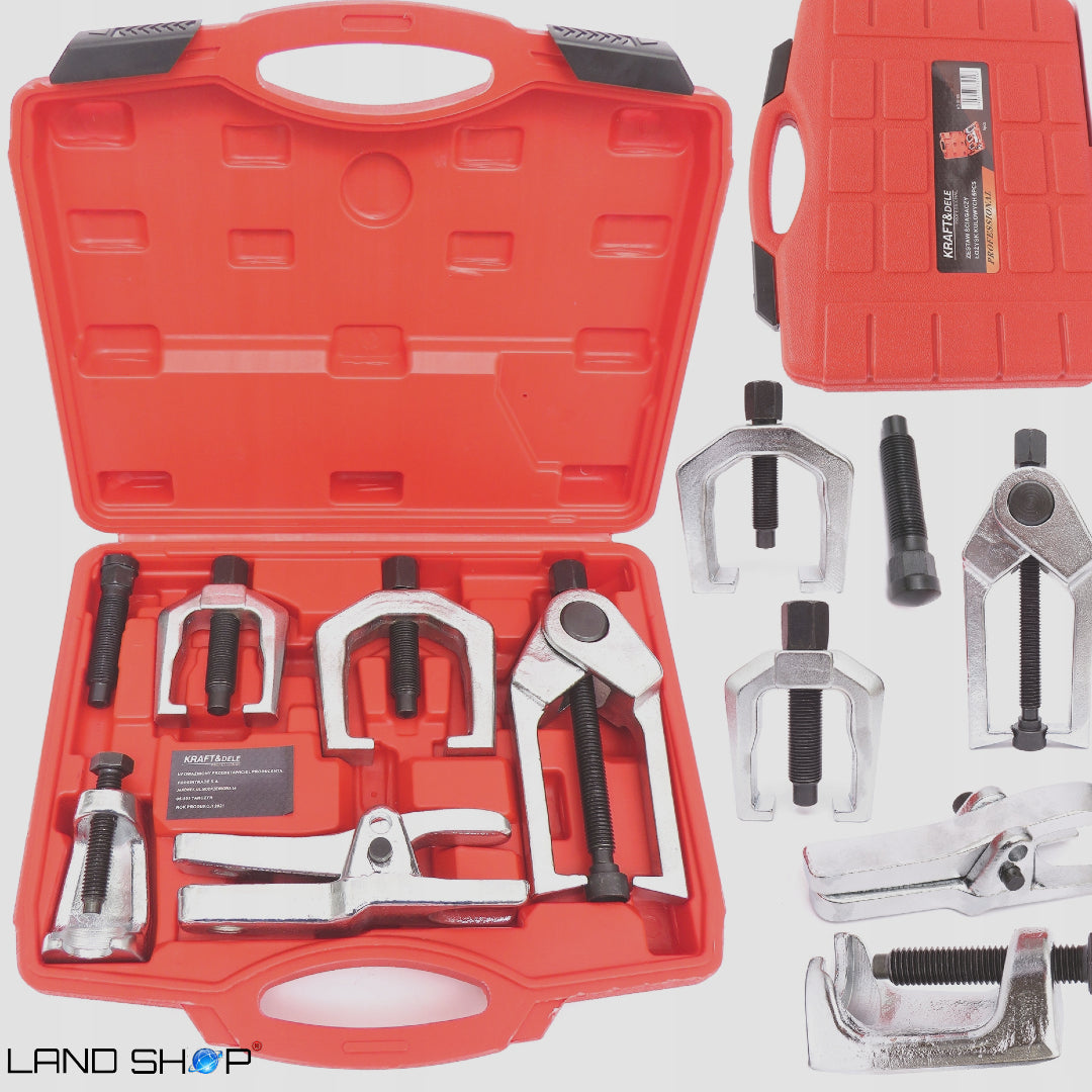 Set od 5 izvlaka?a za montažu i demontažu krajnika , kugli , zglobova , ramena i sli?nih stvari za sva vozila. Alat je izra?en od pocin?anog i kaljenog ?elika. Alat dolazi u prakti?nom plasti?nom koferu što mu osigurava jednostavan transport i skladištenje.