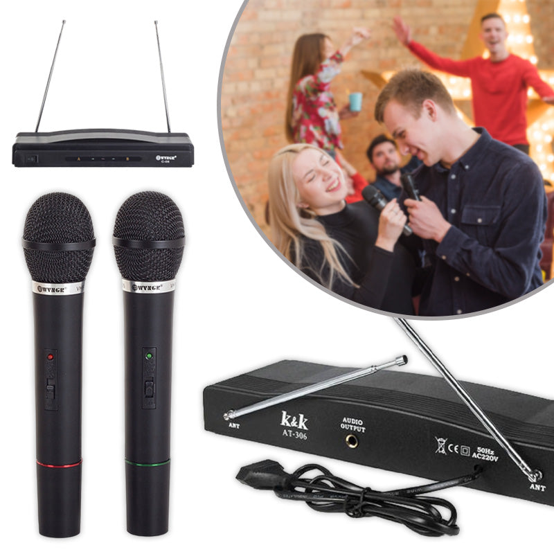 Savršen karaoke set za ku?ne zabave, vjen?anja ili druge proslave, ovaj komplet sadrži sve što vam je potrebno za nezaboravne karaoke trenutke. Beži?ni mikrofoni omogu?uju slobodno kretanje, a razli?ite frekvencije rada omogu?uju vam korištenje oba mikrofona istovremeno ili odvojeno.