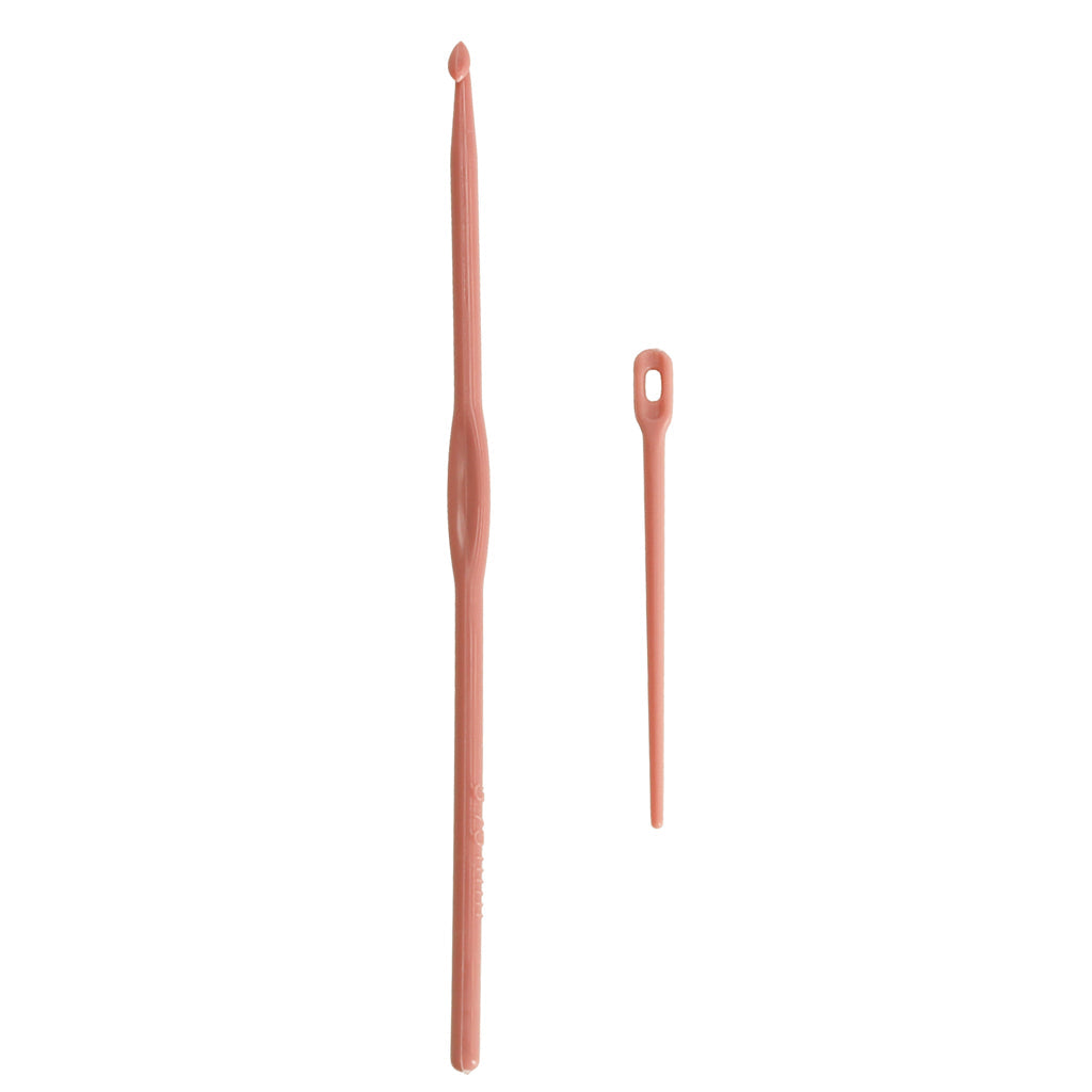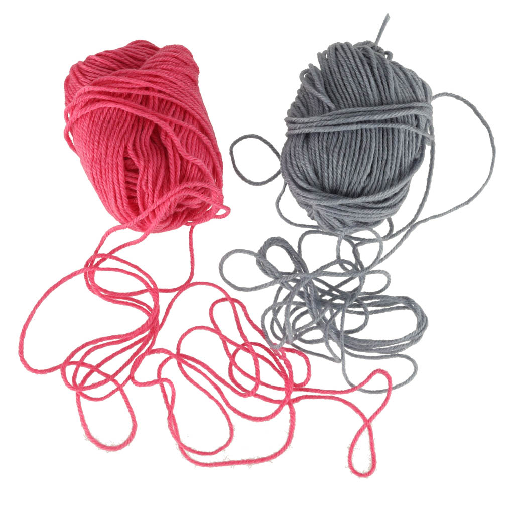 U setu dolaze 2 klupka pređe (siva i roza), igla, kukica i dodatni elementi za lakše korištenje.