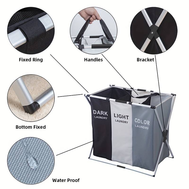 Koš je opremljen sa 3 velika, izdvojena i vodootporna odjeljka za rublje, što omogu?uje jednostavno razvrstavanje tamnog, svijetlog i obojenog rublja, dok istovremeno sprje?ava neugodne mirise.