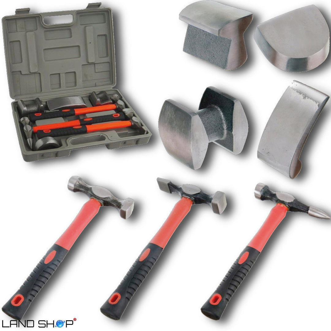 7-dijelni komplet limarskih ?eki?a idealan je za samostalno i profesionalno korištenje. Kov?eg sadrži 3 ?eki?a i 4 nakovnja razli?itog oblika, što omogu?uje obradu složenih metalnih površina. ?eki?i imaju odrške od stakloplastike, vrlo otporne na ošte?enja, što je važno pri radu u radionici. Opremljeni su nekliznom, pravilno profiliranom ru?kom, zahvaljuju?i kojoj se proizvod ?vrsto uklapa u vašu ruku.