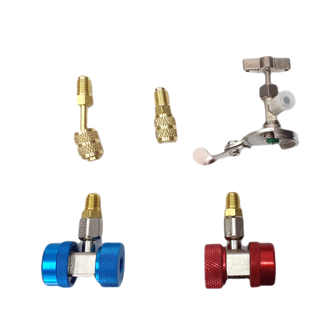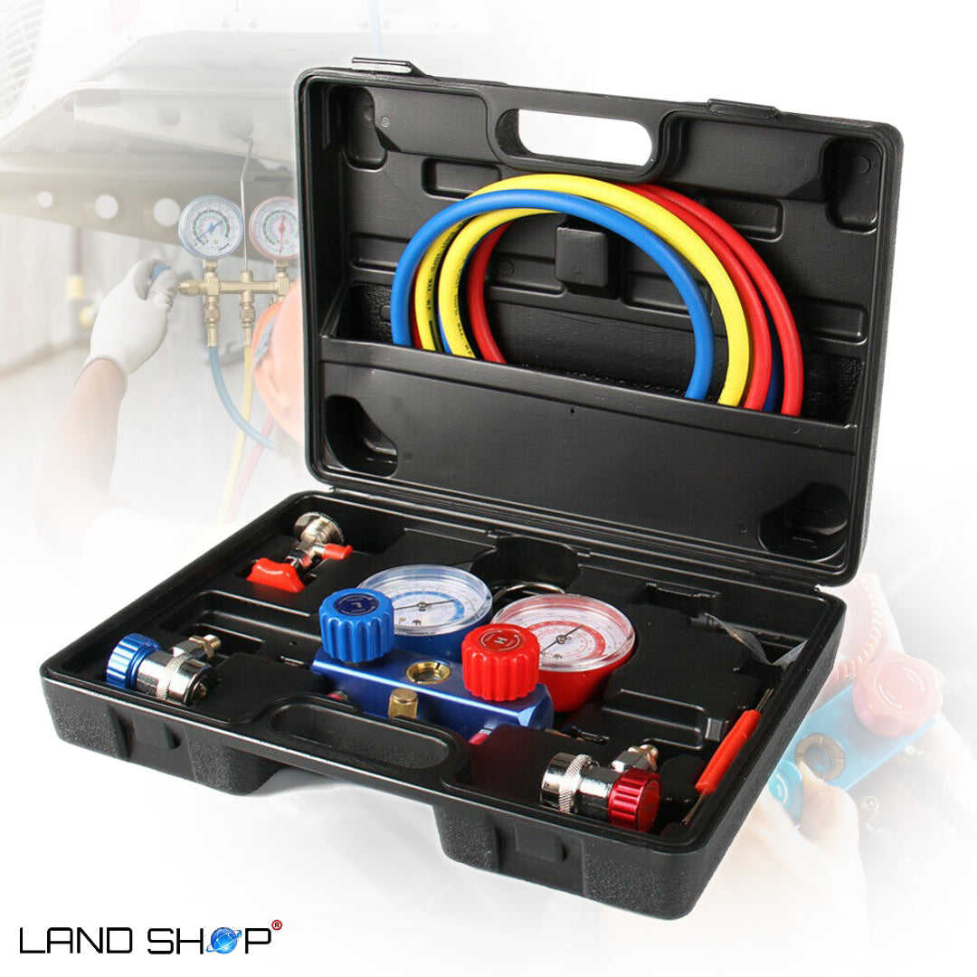 Profesionalni komplet za ispitivanje propuštanja klima ure?aja i punjenje idealno je rješenje za samotestiranje klimatizacijskih sustava. Uspore?uju?i tlak visoke strane i tlak niske strane sa specifikacijama sustava klimatizacije, može se dijagnosticirati potencijalni kvar klime