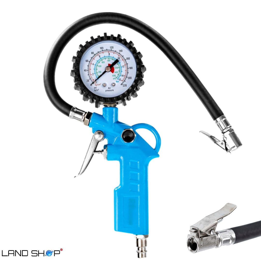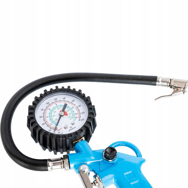 Pištolj za pumpanje guma omogu?uje jednostavno i precizno napuhavanje guma. Manometar se koristi za provjeru tlak u gumama.