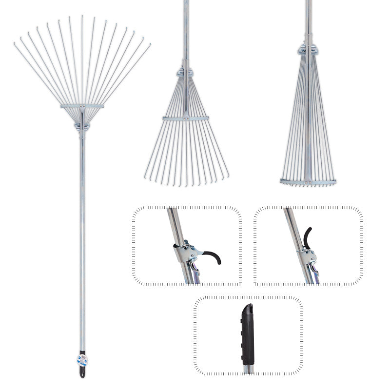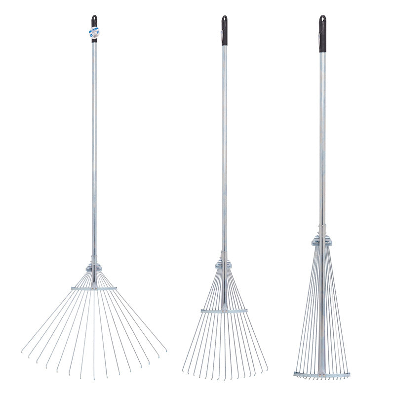 Podesive grablje od karbonskog ?elika izvrstan su alati za u?inkovito prikupljanje liš?a, pokošene trave i drugog vrtnog otpada. Zahvaljuju?i mogu?nosti prilagodbe razmaka zuba, ove grablje su svestrane i u?inkovito se nose s razli?itim vrstama vrtnog otpada. Pogodne su kako za liš?e tako i za pokošenu travu.