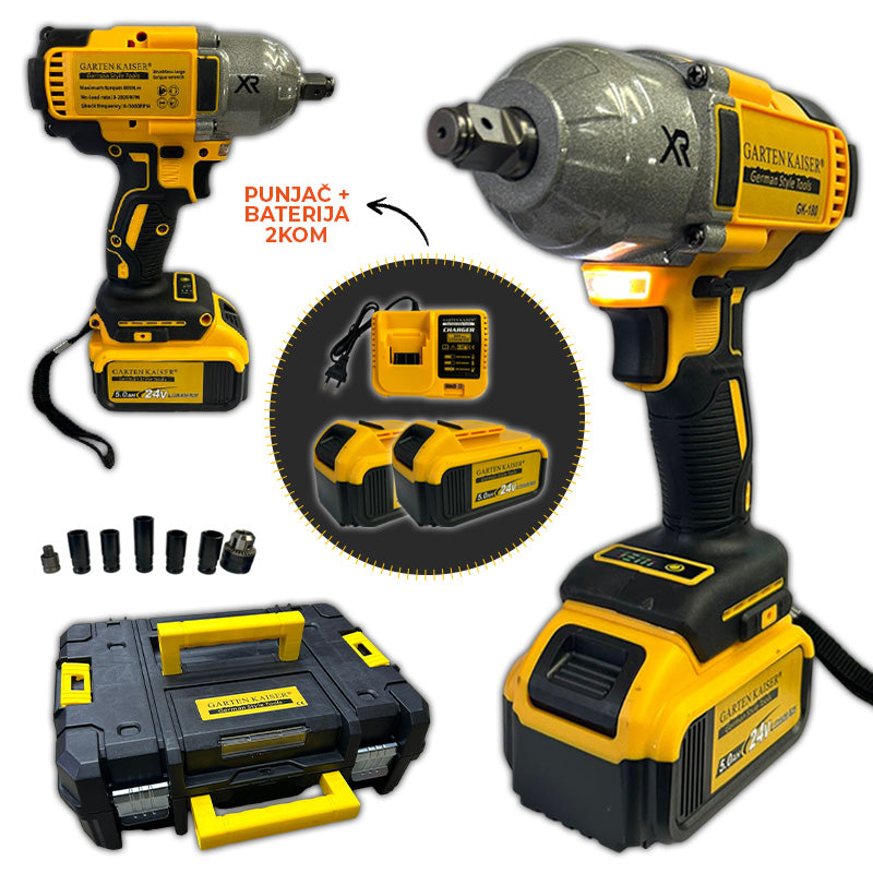 Napajanje snažnom 24V 5.0 AH litij-ionskom baterijom, aku udarni odvija? dizajniran je za dugotrajnu upotrebu, omogu?uju?i rad bez prekida i bez gnjavaže s kablovima. Izdržljivost baterije osigurava dug vijek trajanja, nude?i pouzdanost i snagu u pokretu.
