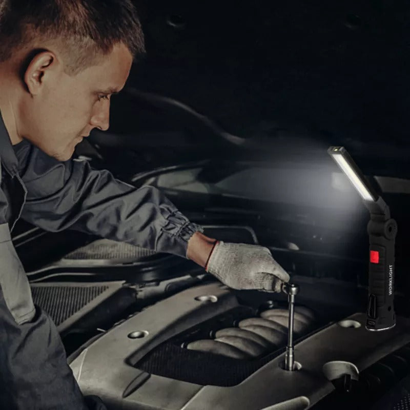 Radna lampa dizajnirana tako da se može približiti teško dostupnim mjestima na kojima je potrebna dodatna svjetlost. Snažan magnet na dnu lampe olakšava pri?vrš?ivanje i tako Vam osloba?a jednu ruku za rad. Punjiva baterija uklju?ena u pakiranje dovolnja je za 3h rada jednim punjenjem. Punjenje baterije od 0% do 100% ,vrši se putem usb kabela koji dolazi u pakiranju.