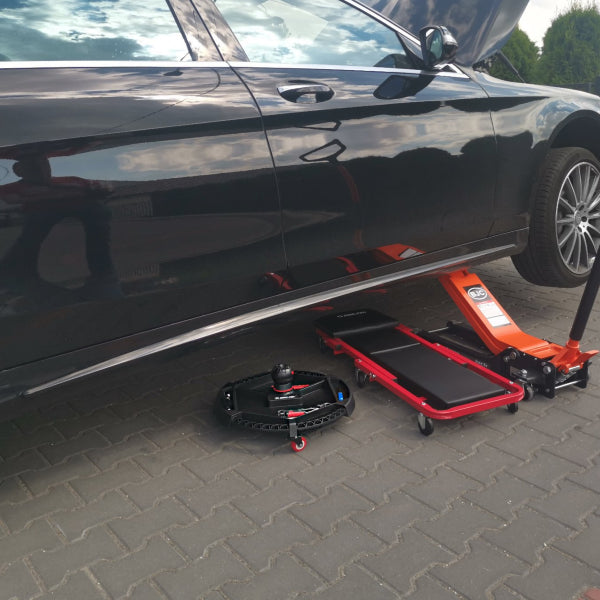 Izuzetno korisne i uporabne u radionici ladice koje se mogu zavu?i ispod auta i ponijeti sa sobom potrebnu opremu i dodatke, a u slu?aju teško dostupnih i tamnih mjesta mogu se osvijetliti LED diodom od 360 stupnjeva dioda. lampa postavljena na magnet.