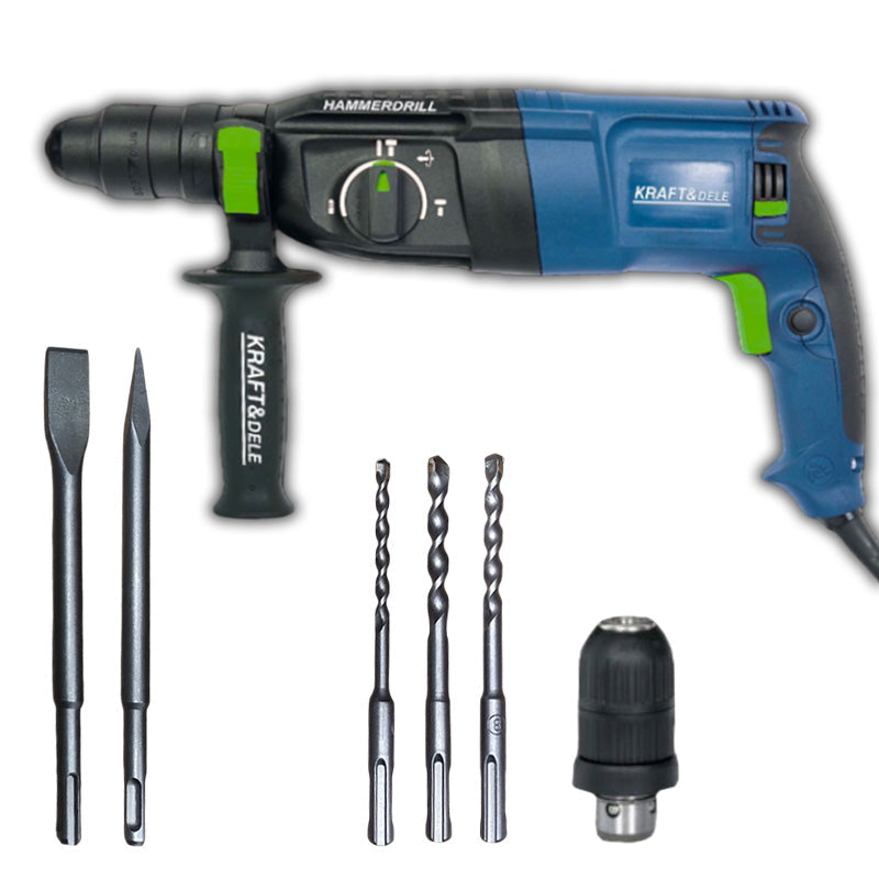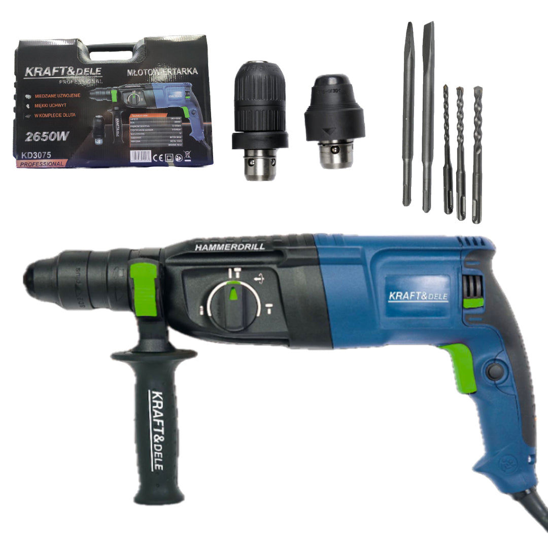 SDS plus udarna bušilica Kraft&Dele KD3075 pruža visoku snagu i u?inkovitost zahvaljuju?i motoru od 2650W, što je ?ini idealnim alatom za teške radne uvjete. Ova bušilica omogu?ava rad u tri na?ina: bušenje s udarcem, bušenje bez udarca i klesanje, ?ime postaje svestran alat za razli?ite vrste zadataka, od bušenja betona do preciznog klesanja.