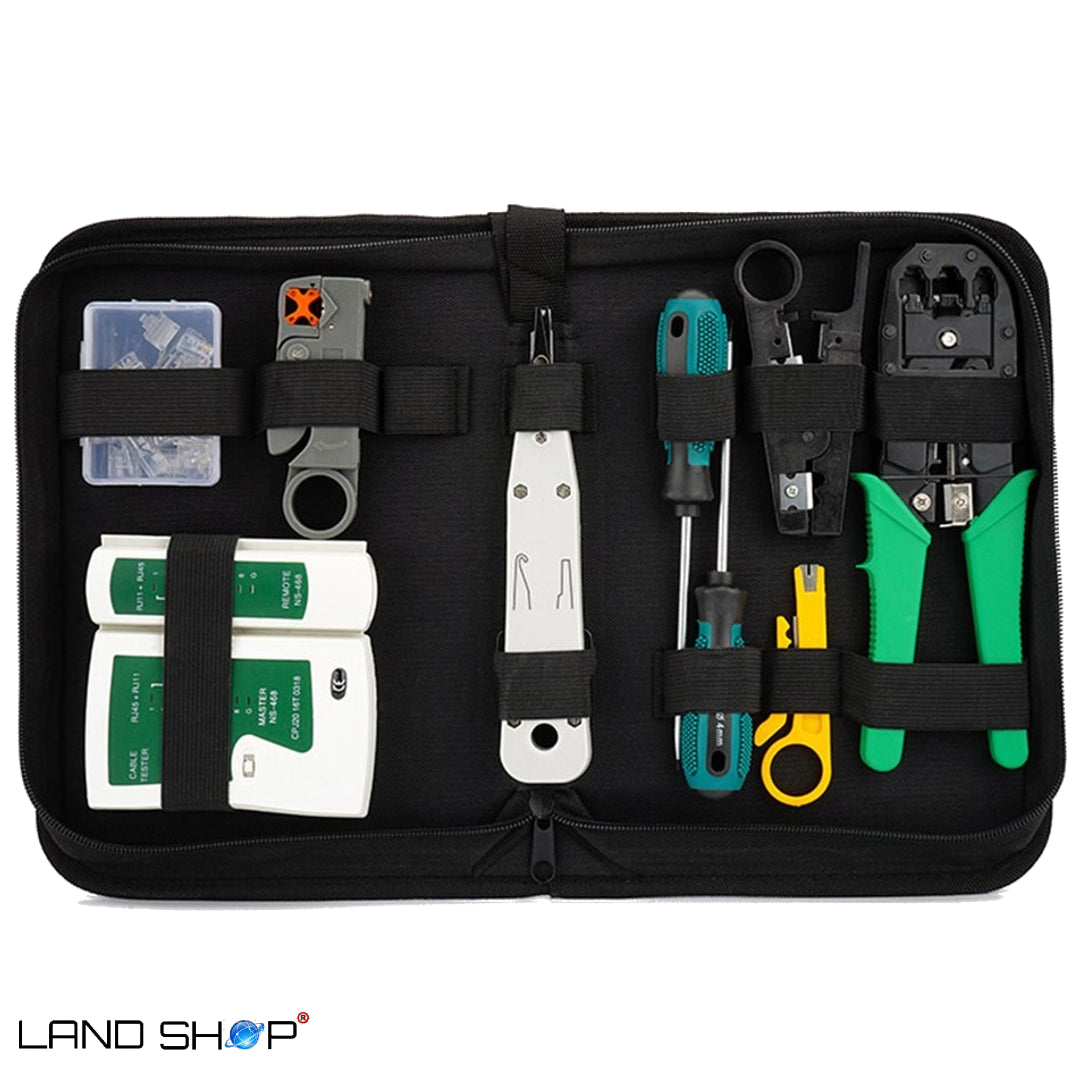 Kompletni alati za održavanje mreže: Komplet alata 9-u-1 uklju?uje kjlešta za presovanje, ispitiva? mrežnog kabela, nož za skidanje žica, ravni /križni odvija?, nož za skidanje kliješta, alat za probijanje i 10 priklju?aka RJ45.