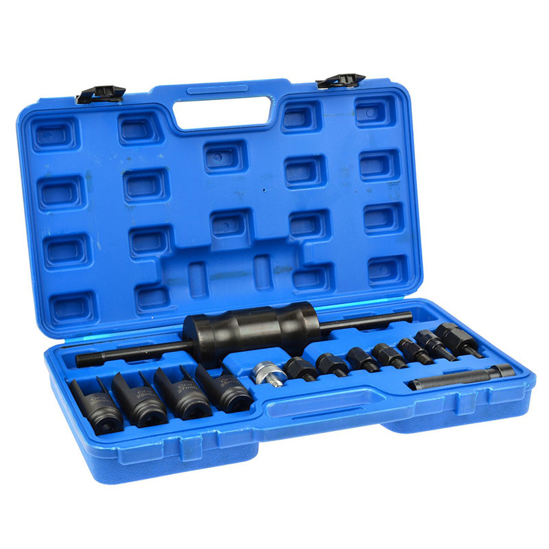 Ovaj komplet vam pruža sve što vam je potrebno za profesionalno rukovanje injektorima na vozilima. S razli?itim adapterima, šesterokutnim klju?evima i inercijskim izvla?a?em, ovo je nezamenljiv alat za radionice koje se bave servisiranjem i održavanjem dizel injektora.
