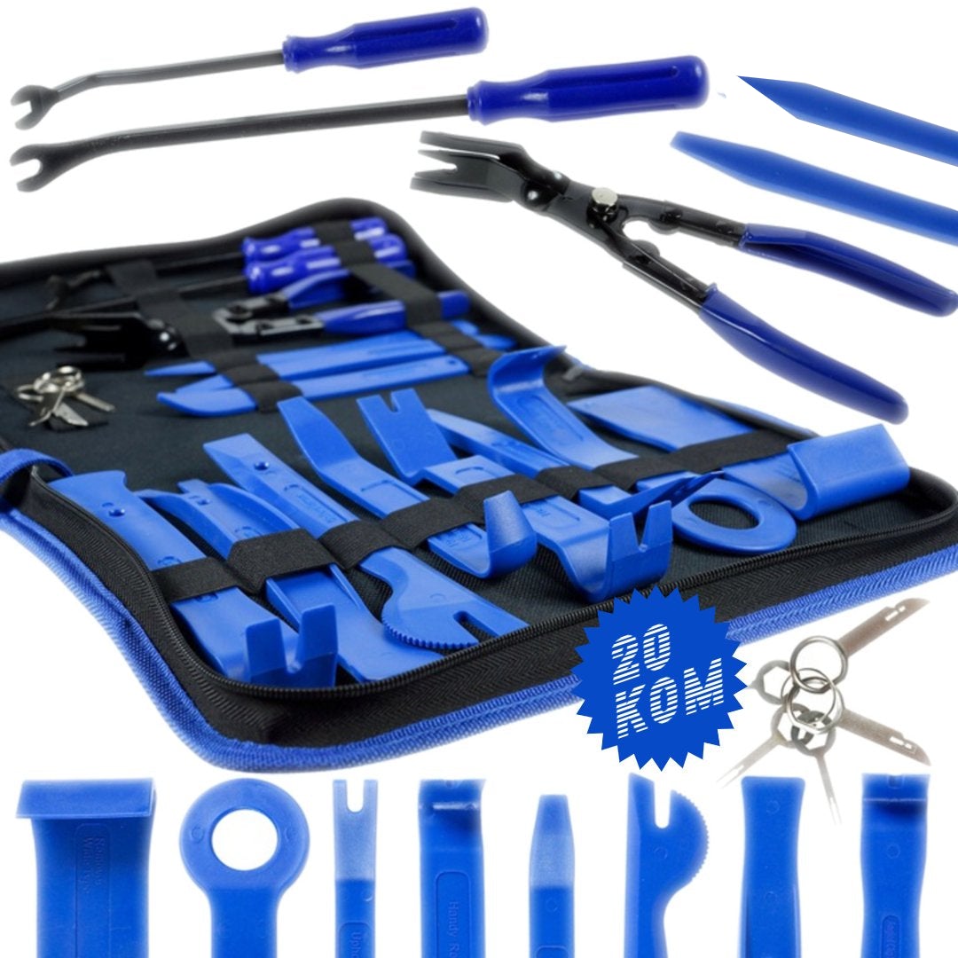 Univerzalni profi set alata od renomiranog proizvo?a?a koji se sastoji od 19 ?vrstih plasti?nih poluga koje služe za skidanje plasti?nih komponenti bez ošte?enja u i na vozilu. Alat je za sve tipove osobnih i gospodarskih vozila.