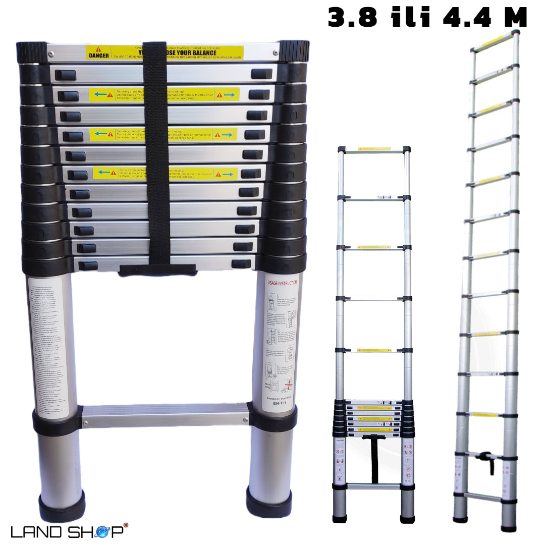 Teleskopske ljestve imaju univerzalnu namjenu. Izraćene su od ćvrstog i kvalitetnog aluminija te podnose teret do 150 kilograma. Zahvaljujući sklapanju, jednostavne su za transport i skladištenje. Ljestve imaju ugra?eno sigurnosno zakljućavanje, koje sprećava iznenadno otvaranje i zatvaranje.