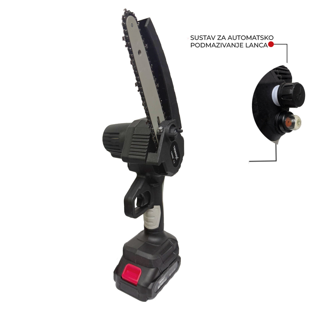 ⚡ NOVA Mini akumulatorska pila postavlja nove standarde u održavanju i efikasnosti, budući da je ovo jedini model na tržištu koji se može pohvaliti kompletnim sustavom za podmazivanje, uključujući pumpicu za ulje lanca.