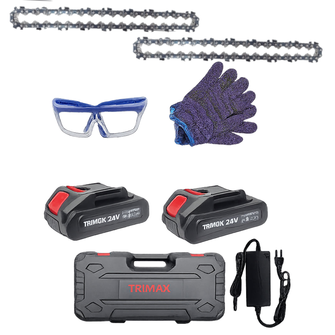 Paket sadrži: Bežičnu pilu, 2x bateriju, punjač, ključ, 1 mač 2 lanaca , rukavica i maocale