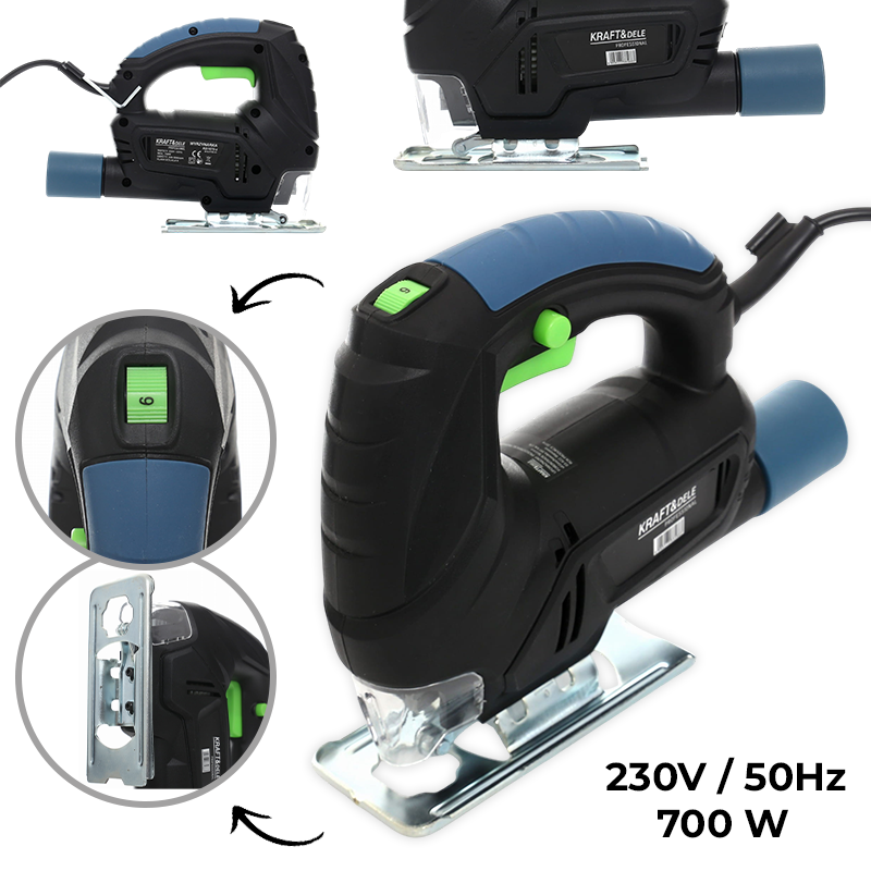 Ubodna pila King serije | 700 W je robusna mrežna ubodna pila marke Kraft&Dele, namijenjena preciznom ravnom i kosom rezanju u drvu, plastici i metalu. Motor od 700 W, podesiva brzina i baza s nagibom do 45° omogućuju brzi napredak i čiste rezove u kućnim i profesionalnim projektima, uz siguran hvat i mogućnost spajanja na usisavač.