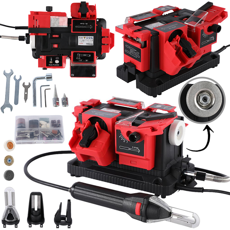 Višenamjenski oštrač 8-u-1 je kompaktan, ali iznimno moćan uređaj za precizno oštrenje svih vrsta reznih alata. Zahvaljujući izmjenjivim modulima i fleksibilnom vratilu, idealan je za radionice, servise i kućnu upotrebu.