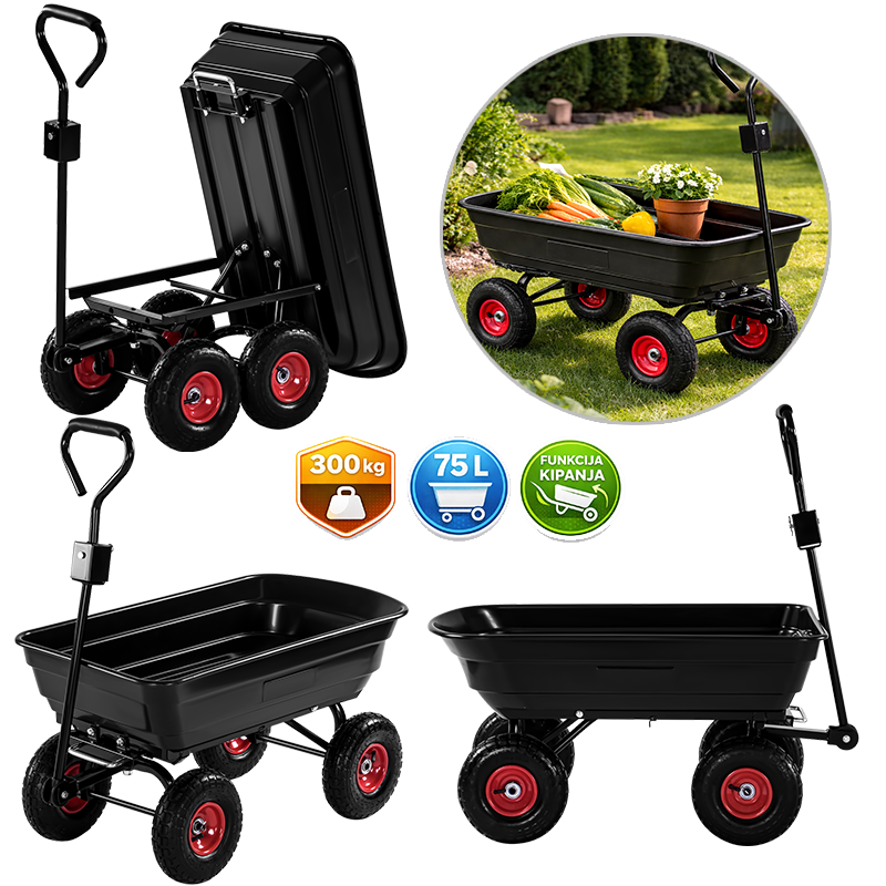 Vrtna transportna kolica KD3127 marke Kraft&Dele predstavljaju čvrsto i praktično rješenje za radove u vrtu, voćnjaku, na imanju, gradilištu ili okućnici. Zahvaljujući velikoj nosivosti do 300 kg i zapremnini sanduka od 75 litara, idealna su za prijevoz zemlje, pijeska, drva, alata, građevinskog materijala ili uroda.