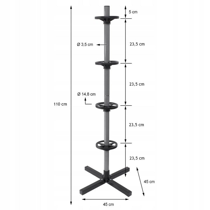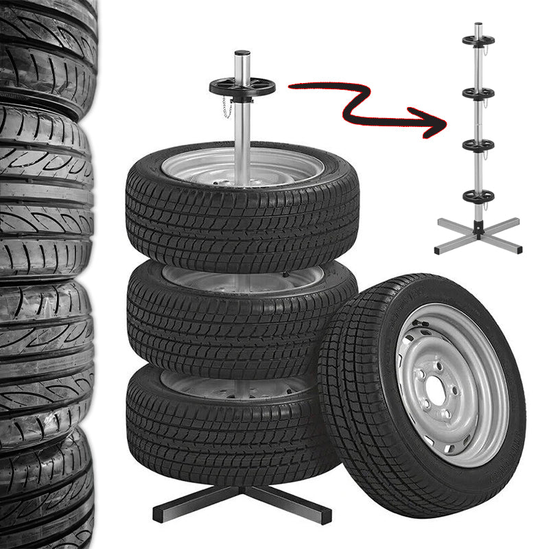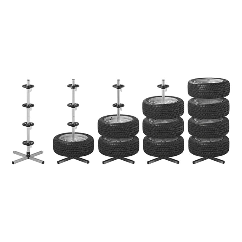 Stalak za gume prikladan je za pravilnu pohranu ?etiri auto gume. Izra?en je od robusnog metala koji osigurava dugi vijek trajanja i stabilnost. Stalak za gume odgovara gumama širine do 235 mm.