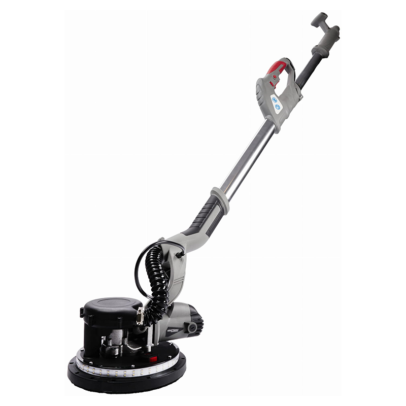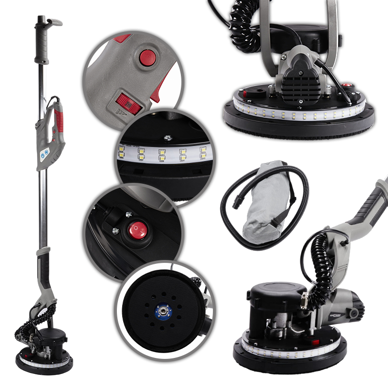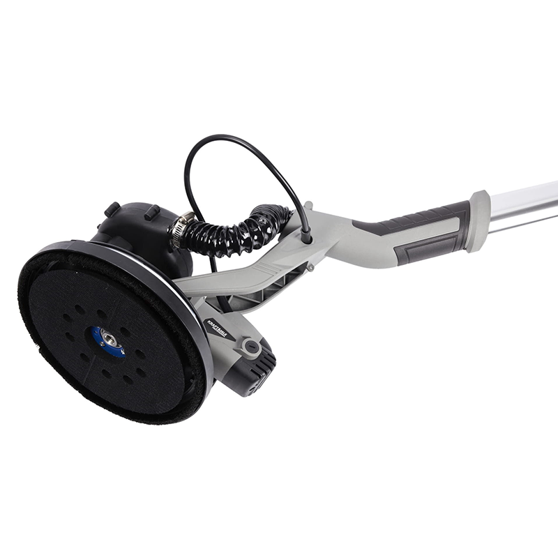 Uređaj je opremljen podesivim teleskopskim rukohvatom duljine od 150 do 220 cm, što omogućuje udoban rad i na višim površinama, ali i u manjim prostorijama. Zglobna glava osigurava lakše vođenje brusilice i bolje prilagođavanje površini, dok sustav pričvršćivanja brusnog papira na čičak omogućuje brzu i jednostavnu zamjenu brusnih diskova. Ugrađeno LED osvjetljenje dodatno olakšava rad jer jasno otkriva neravnine i nepravilnosti na obrađivanoj površini.