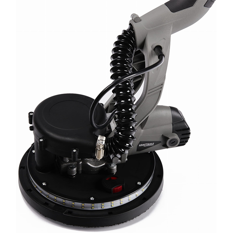 Žirafa brusilica za glet i žbuku s LED svjetlom 2000W KD1798 je snažna žirafa brusilica marke KRAFT&DELE, namijenjena brušenju gleta, žbuke te zidnih i stropnih površina. Snažan motor od 2000 W u kombinaciji s velikim brusnim tanjurom promjera 225 mm omogućuje brzo, ravnomjerno i učinkovito obrađivanje većih površina, što značajno skraćuje vrijeme rada kod završnih građevinskih i adaptacijskih radova.